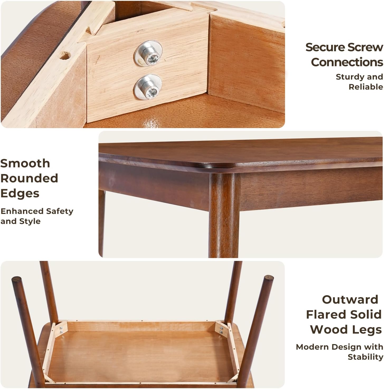 DELAVIN 47.2" Solid Wood Dining Table, Mid Century Modern Wooden Kitchen Table, Farmhouse Dining Room Table, Easy Assembly, Walnut, 47.2" L x 29.5" W