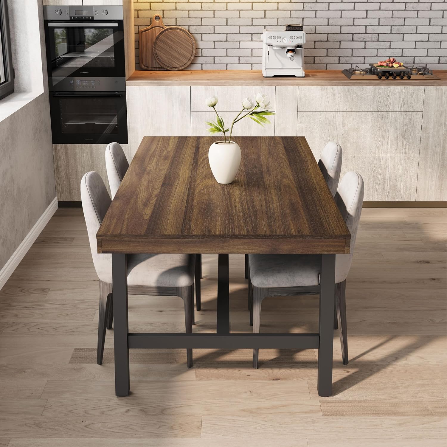 GarveeHome Industrial Dining Table for 6-8 People, 70.87" Long Wooden Kitchen Table with Sturdy Metal Frame & Rustic Brown Finish (Brown, 70.87" Long)