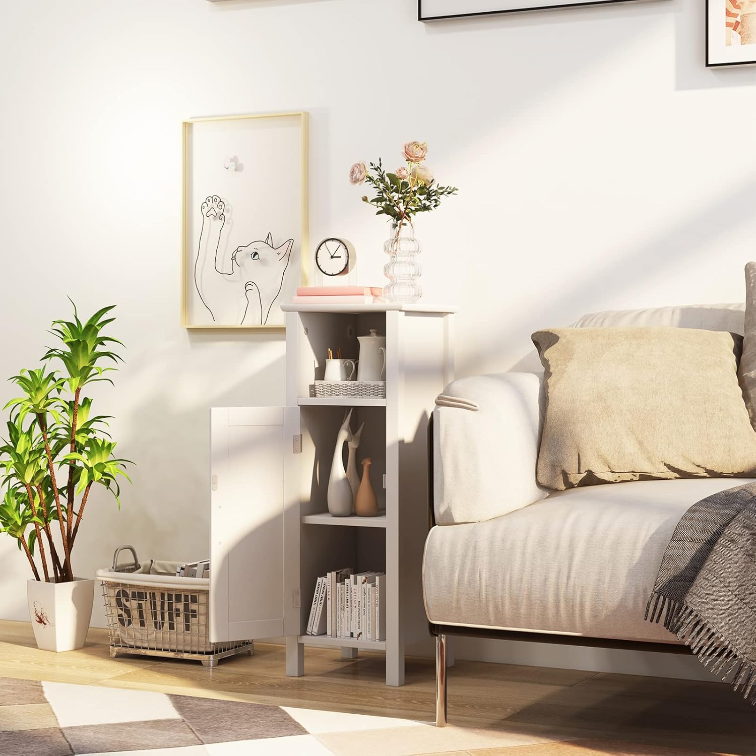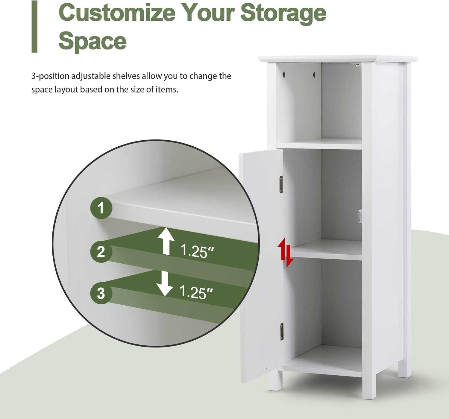 Tangkula Bathroom Floor Cabinet, Multifunctional Storage Cabinet, Anti-Tipping Device, 3-Height Adjustable Shelf, Wooden Freestanding Side Cabinet for Bathroom Home Office, 12 x 12 x 31.5 Inch