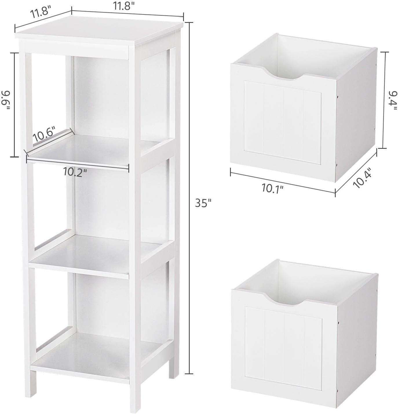 Bathroom Storage Cabinet, Wooden Floor Cabinet with 2 Drawers, Multifunctional Organizer Rack Stand, White